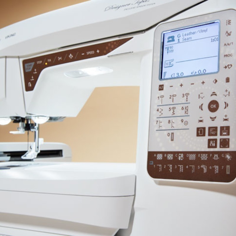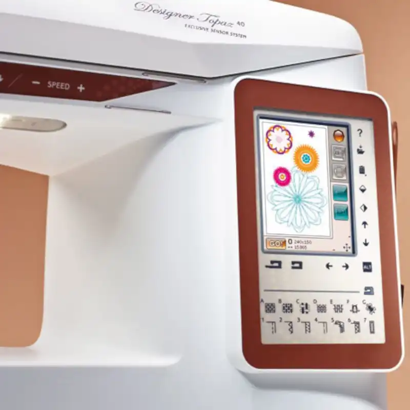 To magiczne w tym, jak szycie plus haft zamienia coś zwyczajnego w coś niezwykłego. Dzięki maszynie do szycia i hafciarce DESIGNER TOPAZ™ 40 zyskujesz również możliwość korzystania z wbudowanej pomocy i oszczędności czasu, które pomogą Ci wcielić Twoje pomysły w życie. Przenieś swoją kreatywność na zupełnie nowy poziom. Spodziewaj się bajecznego szycia i niebanalnego haftu!