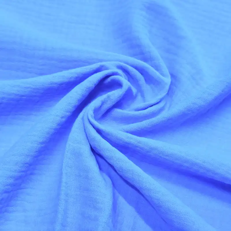 Muślin double gauze to podwójna warstwa cienkiego, marszczonego muślinu, zszyta punktowo, dzięki czemu wygląda jak jedna tkanina, ale jest grubsza, bardziej miękka i jeszcze bardziej puszysta.