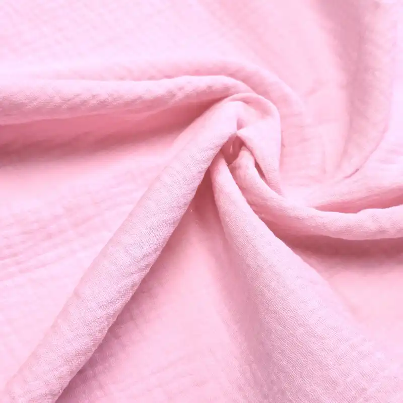 Muślin double gauze to podwójna warstwa cienkiego, marszczonego muślinu, zszyta punktowo, dzięki czemu wygląda jak jedna tkanina, ale jest grubsza, bardziej miękka i jeszcze bardziej puszysta.