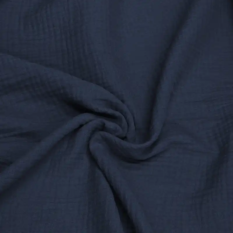 Muślin double gauze to podwójna warstwa cienkiego, marszczonego muślinu, zszyta punktowo, dzięki czemu wygląda jak jedna tkanina, ale jest grubsza, bardziej miękka i jeszcze bardziej puszysta.
