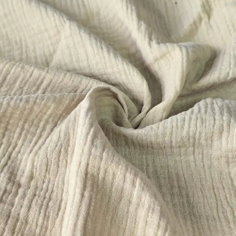Muślin double gauze to podwójna warstwa cienkiego, marszczonego muślinu, zszyta punktowo, dzięki czemu wygląda jak jedna tkanina, ale jest grubsza, bardziej miękka i jeszcze bardziej puszysta.