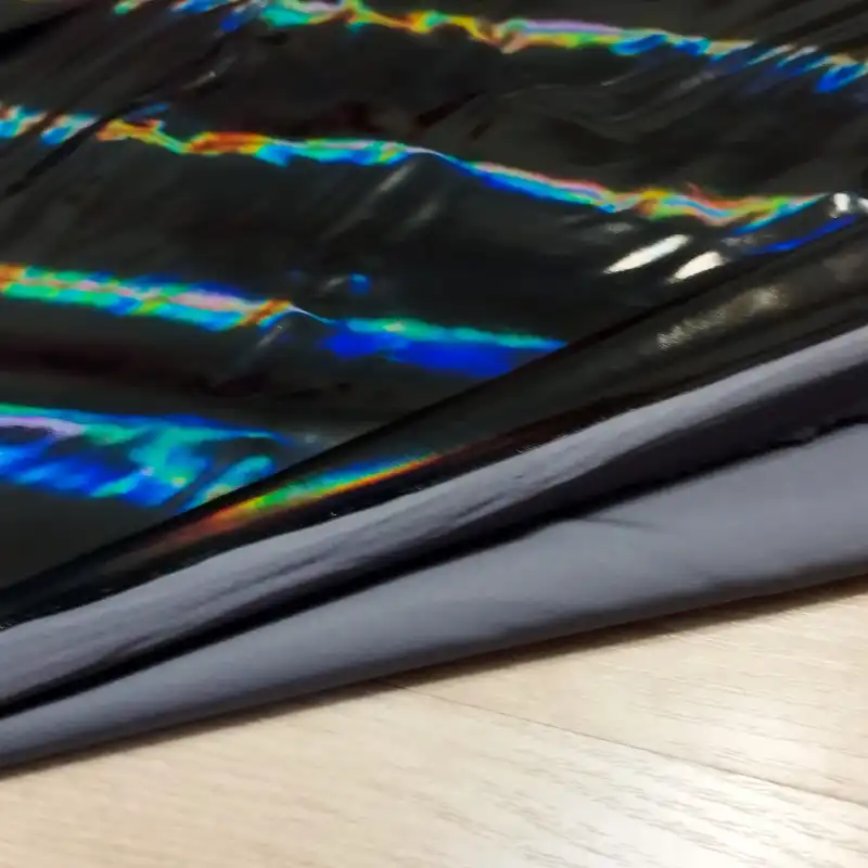 Ortalion gumowany gladki czarny z opalizującymi pasami